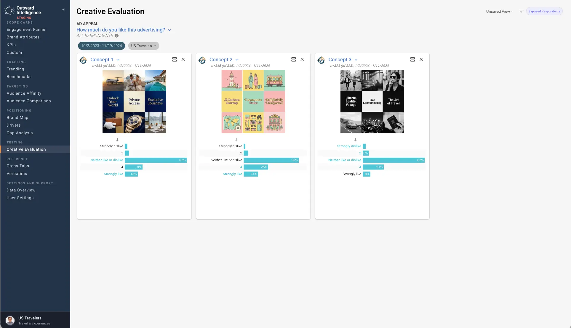 Outward Intelligence combines advanced survey design, automated fieldwork, and expert guidance. You get the precision of full-service research with the agility to test whenever you need.